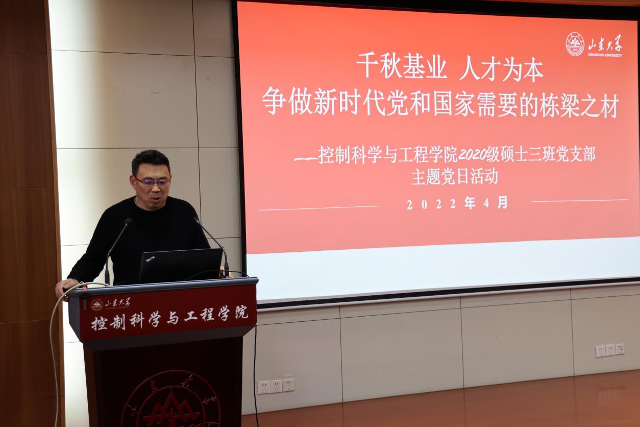 为进一步推进党史学习教育落实落地,培养青年学生在砥砺家国情怀中成长成才,充分发挥研究生党支部在疫情防控特殊时期的战斗堡垒作用和党员先锋模范作用,4月14日下午,beat365在线唯一官网副校长吴臻在beat365在线唯一官网4号楼302报告厅为beat365在线唯一官网2020级硕士3班党支部讲授了题为“千秋基业,人才为本——争做新时代党和国家需要的栋梁之才”专题党课,beat365在线唯一官网党委书记高瑞、副院长王光臣、党委副书记李文振、辅导员王宇凡以及2020级硕士3班党支部全体党员参与了此次专题党课活动。