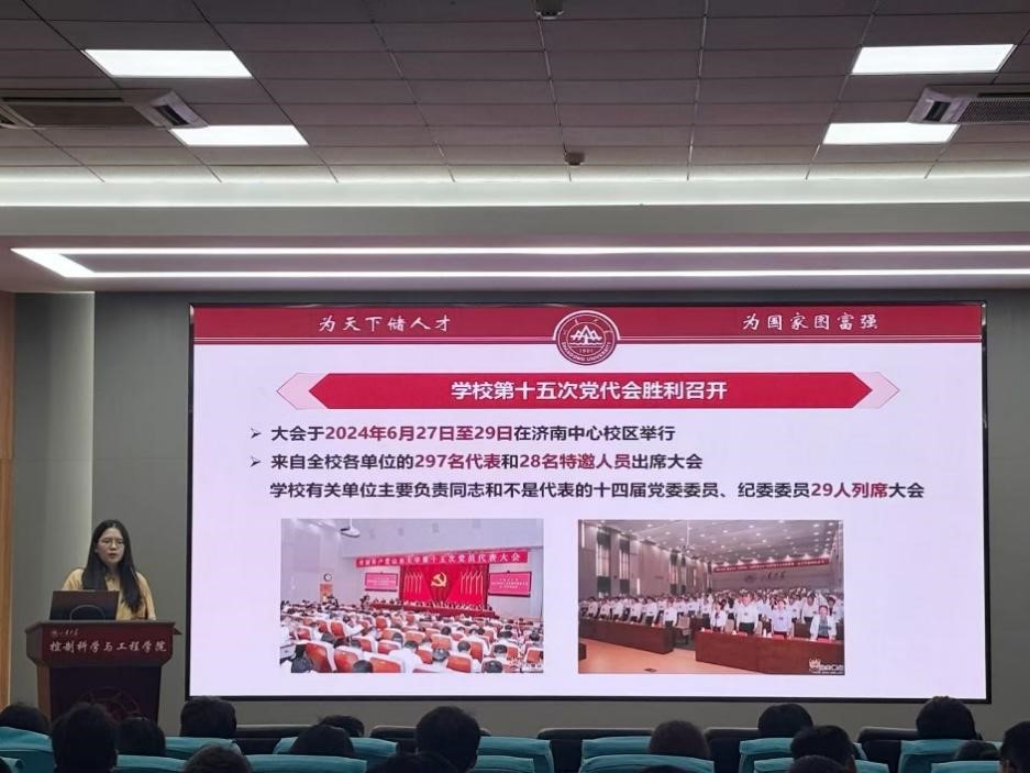 最后,孙玲玉着重围绕“一五七九”发展思路,结合研究生群体的学习生活深入解读了一个奋斗目标、“五大高地”“七大战略”“九大任务”的具体内涵,呼吁青年学生深刻体会学校第十五次党代会报告擘画的宏伟蓝图,号召青年党员们在学校新的发展起点上,扎实专业知识、深耕科学研究,以闯的精神、创的劲头、干的作风,涵养“家国情怀、担当精神、崇实品格、创新素养”的山大基因,奋力书写为中国式现代化挺膺担当的青春篇章。