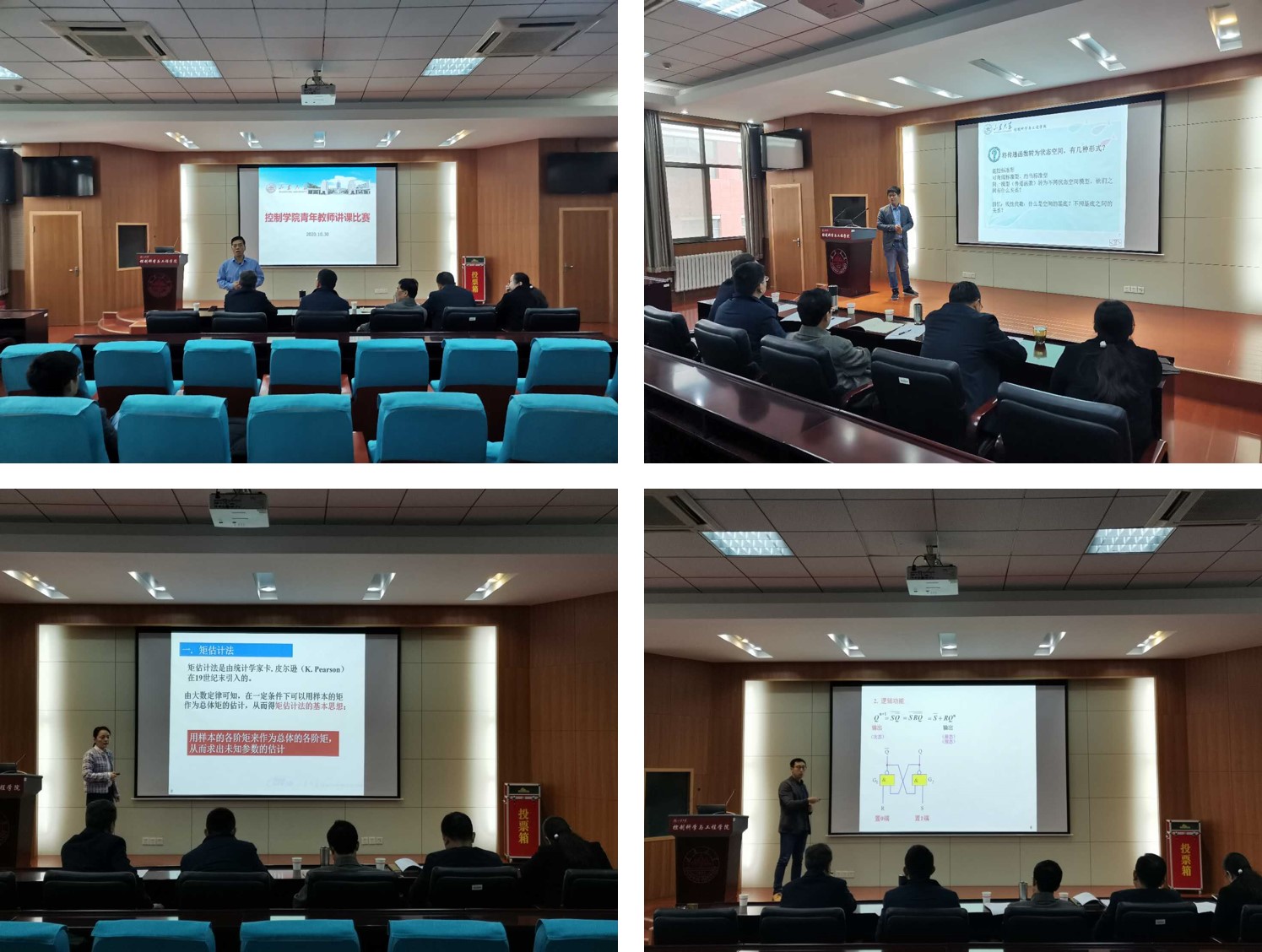 比赛开始前,朱文兴介绍了此次比赛的重要意义,以及比赛的规则和流程安排。他特别指出青年教师教学比赛为青年教师的成才、磨练和教学能力的提高将起到很好的促进作用。比赛中,学院各系所的青年教师经过充分准备,向现场评委展示了各自的教学风采。各位参赛教师结合PPT向大家展示了概率论与数理统计、现代控制理论、数字电子技术基础等多门学科,以清晰流畅且富有感染力的语言表达,生动形象且幽默风趣的教学风格,注重启发和培养创新思维的教学特色,营造出氛围轻松又有吸引力的课堂效果,给现场评委留下了深刻印象。特别是各位教师在讲课过程中注重课程思政的融合,并加强与学生互动,激发学生兴趣,鼓励学生发挥特长,体现了以学生为中心的发展思路。专家评委主要从教学设计、教学内容、教学组织、教学语言与教态、教学特色、教学反思六个方面进行评审,根据打分情况评选出了一二三等奖,并推荐6名优秀选手参加校级教学比赛。