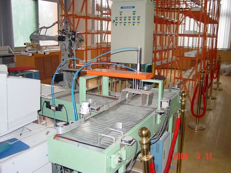现代物流控制实验中心是目前我国第一个现代的物流控制实验室,隶属于山东省重点实验室——工程系统控制实验室,设备价值200余万元。建有两个巷道四排立体货架共120个货位,一台全自动堆垛机、两个出入库货台、一台出入库作业的六自由度SK6机械手,以及输送机、动态条码识别器、电子称、倒位转台和相应的控制系统。
