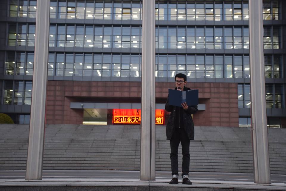 仪式结尾,孙瑞泽同学带领大家重温中国共产主义青年团入团誓词。孙同学目光如炬、字字铿锵,同学们也都难掩心中激情,声声嘹亮。