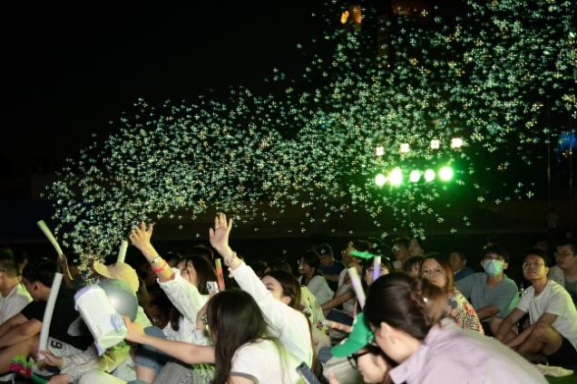 每个人的青春,总有一首难忘的音乐记忆。也许是去海边,一起在夏日傍晚光着脚丫,在沙滩上留下我们的专属印记;也许是一首“brave heart”,让你我回到童年;也许是穿越未来过去的“想见你”,让思念有迹可循……伴随着动感的旋律,热情的观众纷纷挥舞手中荧光棒,跟随演唱者放声齐唱,现场欢乐的气氛与轻快、充满自信的曲调相映成趣,唱响了青年学子青春应有的模样。