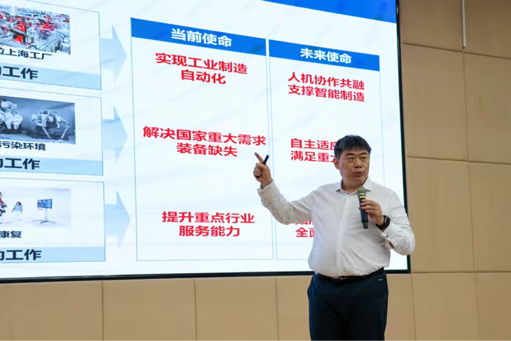 讲座伊始,宋锐以近年来机器人领域几件大事为切入点,对当前科技形势进行研判,探讨机器人未来国际竞争战略格局,分析发展机器人技术的战略意义与必要性,详细讲解机器人的基本理念和近两年机器人产业发展关键节点与创新发展趋势,介绍产业发展所需的核心与共性技术。他指出,我国智能机器人技术与产业发展迎来攻坚克难关键时期、重大发展机遇期、高质量发展转型期,风险与机遇并存,急需一批基础知识扎实、科研能力雄厚的人才攻坚克难。希望同学们珍惜大学时光,努力学好专业知识,全面提高个人能力素质,勤思考、多动手、肯实践、善合作,将来为机器人产业技术发展作出贡献。
