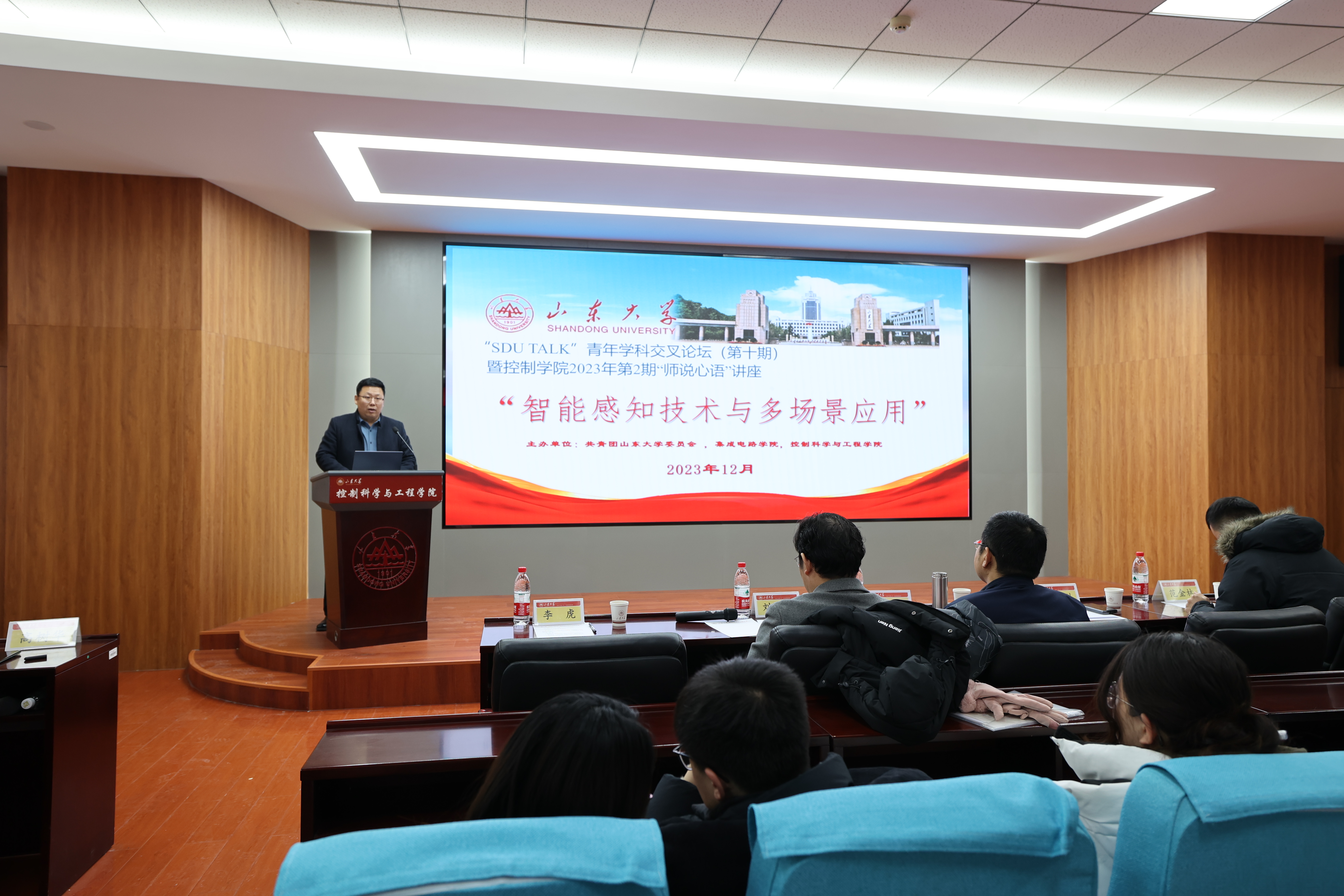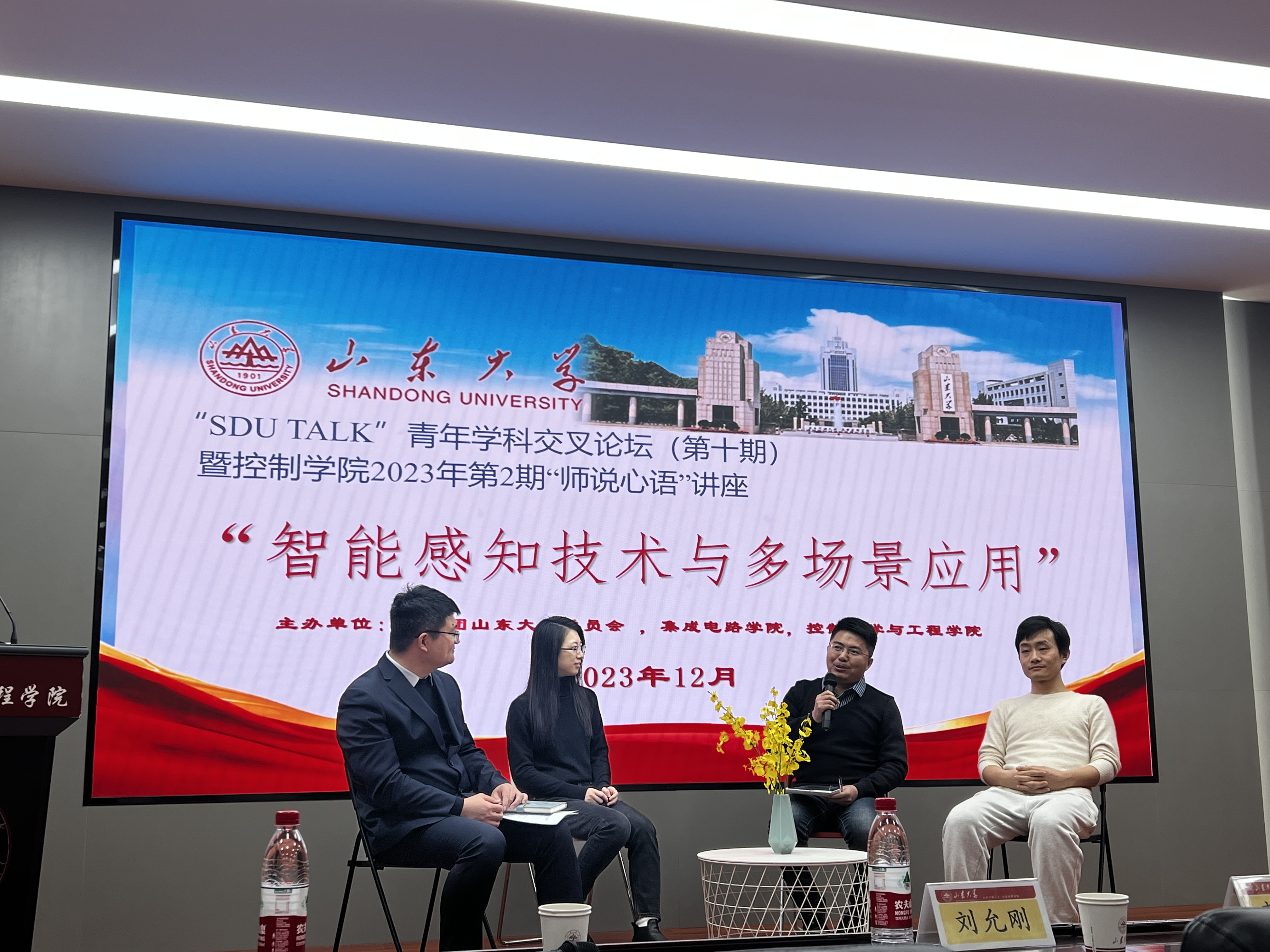 12月27日,第十期“SDU TALK”学科交叉青年论坛暨beat365在线唯一官网2023年第2期“师说心语”讲座在千佛山校区举办。本期论坛以引领“智能感知技术与多场景应用”为主题,beat365在线唯一官网团委书记姜炳刚、beat365在线唯一官网党委书记高瑞出席活动并致辞,beat365在线唯一官网教授刘允刚、宋然作为特邀点评嘉宾出席论坛,集成电路学院教授李虎,beat365在线唯一官网研究员高树华、教授王超群、研究员贾潇作为主讲嘉宾参与活动。