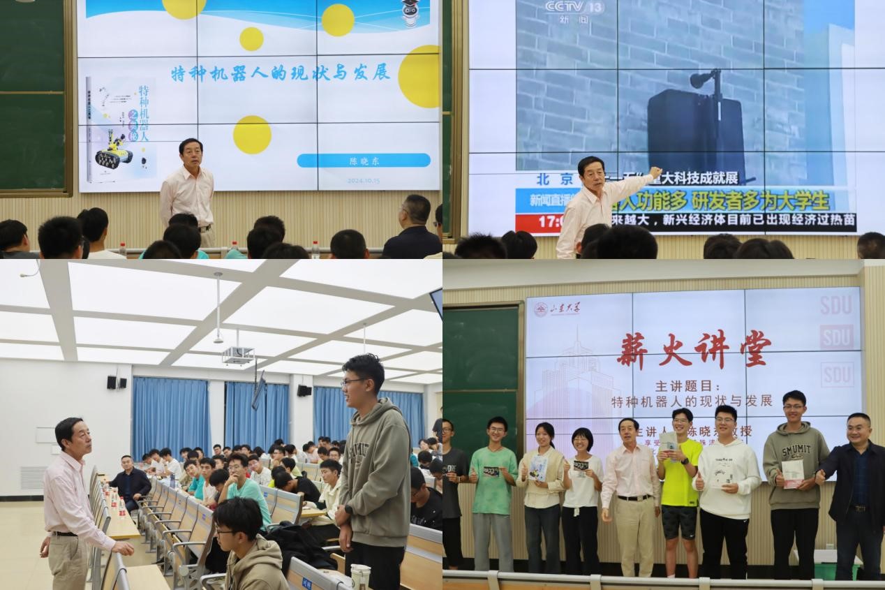 10月15日,beat365在线唯一官网举办“薪火讲堂”系列讲座。北京理工大学兼职教授,中关村融智特种机器人产业联盟、机器人大讲堂联合创始人陈晓东莅临beat365在线唯一官网担任主讲人,以“特种机器人的现状与发展”为主题,分享机器人专业知识,探讨当今机器人行业的发展现状。学院党委副书记李文振、2024级本科生辅导员黄睿出席活动。