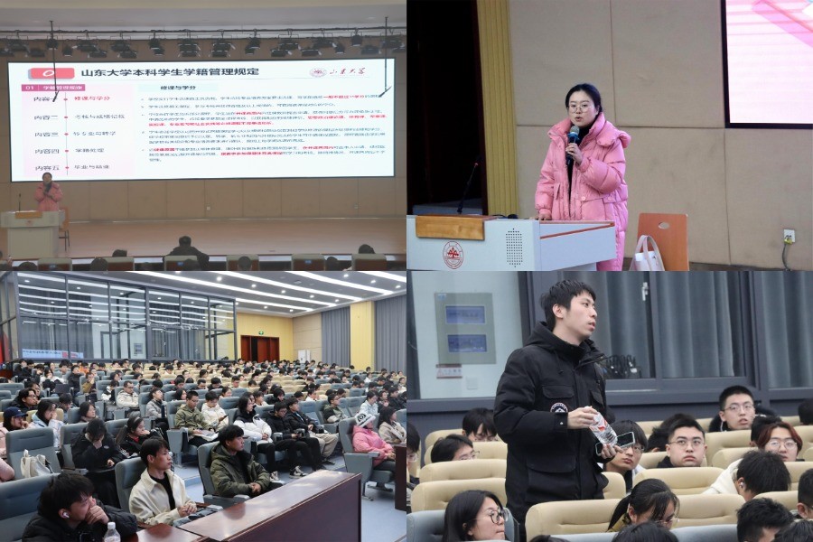 讲座伊始,孙亚对《beat365在线唯一官网本科学生学籍管理规定》进行深度解读,确保教学工作的规范性和严谨性。她解读了本科人才培养方案的构成体系和指导作用,阐述了关键内容,重点围绕学生选课的常见问题与毕业审核要求等方面展开系统讲解,并指出重要时间节点和事项,特别是毕业生要把握重点,提前规划,加强学术诚信。在选课常见问题阶段,孙亚介绍了选课流程,帮助同学们规避选课误区,轻松、高效地完成选课。针对选课流程中的核心环节作出重点提醒,孙亚强调需严格参照班级课表选择必修课程,提醒学生注意课程代码一致性及重修课程属性修改等细节,防止出现选择同名课程但不同编号导致无法毕业的现象。在毕业审核要求阶段,她特别指出除明确学分、绩点、体测等硬性指标外,“稷下创新”“齐鲁创业”等特色课程以及人文、国学等相关课程也有相应的学分要求。最后孙亚根据毕业审核所遇到的常见问题,例如,毕业时间节点、任选课程学分的补修等内容进行了详细解答。