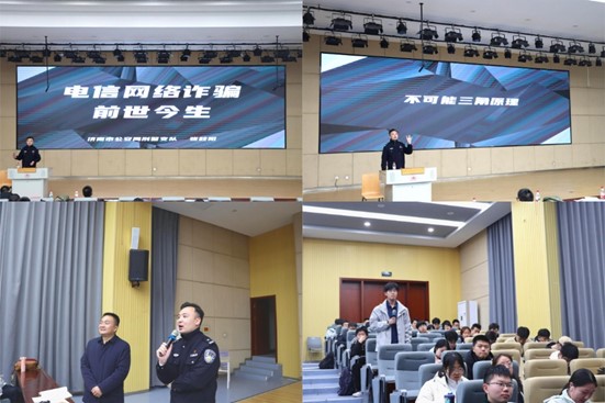 此次讲座围绕诈骗案例回溯与剖析、诈骗团伙演变与打击难点、公安机关反诈行动与挑战、防骗知识与应对策略等四个板块展开。张秋阳以典型案例故事引入讲座主题,层层推进讲述诈骗的隐蔽性与危害性,系统梳理了电信诈骗的演变发展历程,介绍了公安机关与此同时采取的应对措施,从最初的接警处理尾追打击到联系银行进行线上拦截反制,再到如今打防结合形成全社会反诈格局,虽取得一定成效,但诈骗手段层出不穷,群众财产安全仍受到严重威胁。因此,张秋阳提醒师生务必树立反诈意识,牢记“不输密码”原则,遇资金交易保持冷静,可疑情况及时沟通或报警。