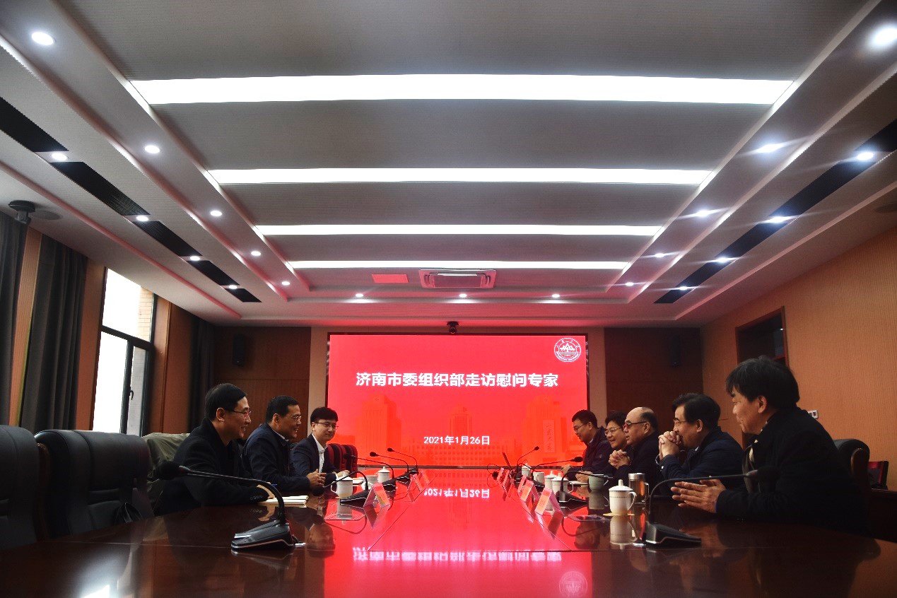 1月26日上午,济南市委组织部副部长韩洪强一行3人走访慰问了beat365在线唯一官网张承慧教授、材料学院刘相法教授。走访慰问活动在千佛校区4号教学楼举行,学校人事部(人才办)李岩副部长主持活动。