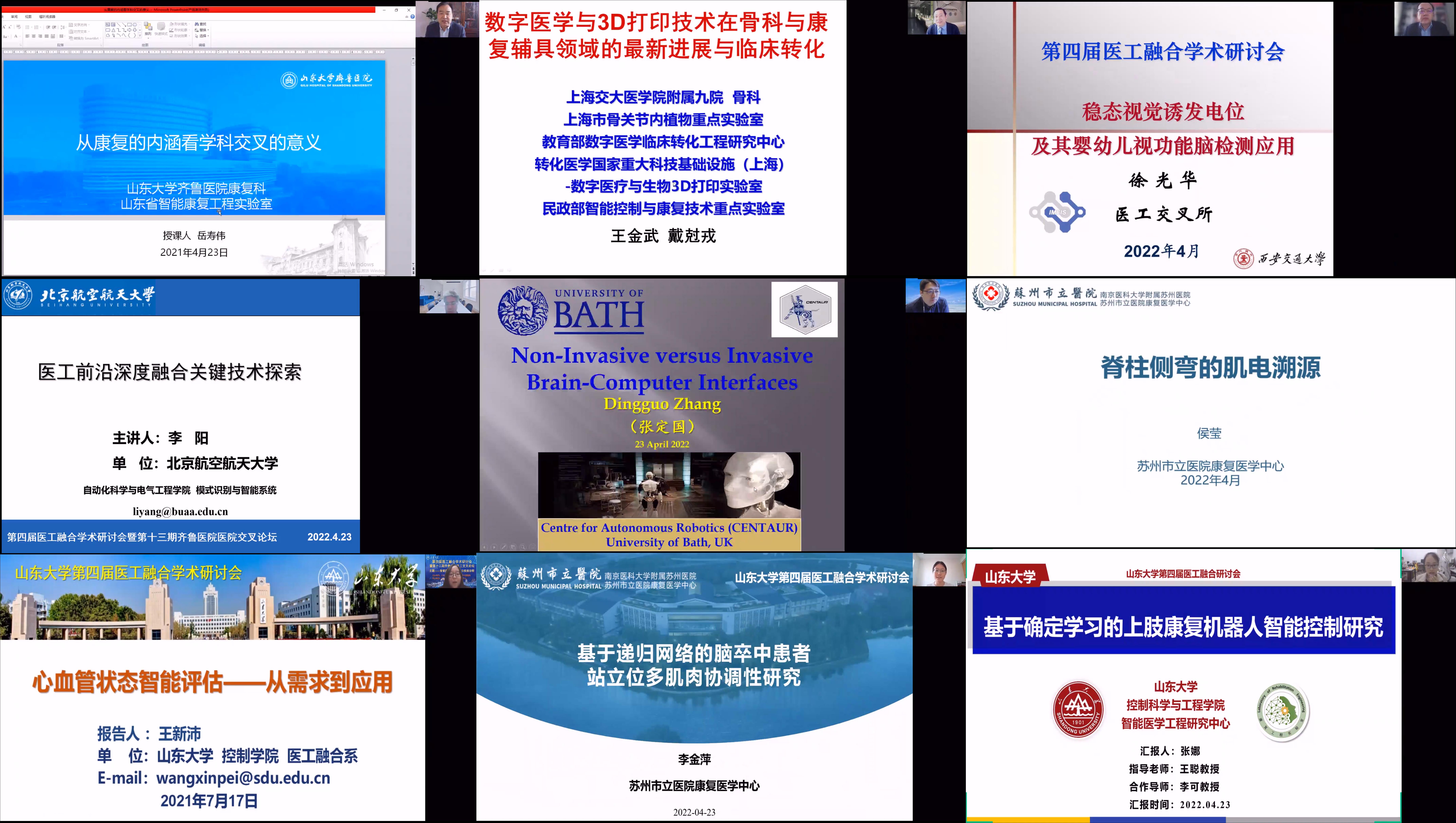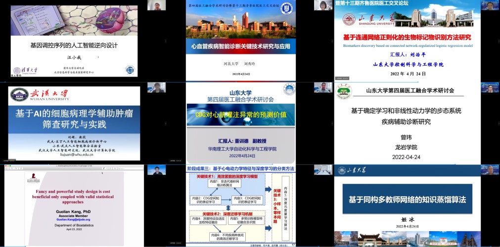 2022年4月23-24日,由beat365在线唯一官网、beat365在线唯一官网齐鲁医院主办,beat365在线唯一官网智能医学工程研究中心承办的第四届医工融合学术研讨会暨第十三期齐鲁医院医工交叉论坛成功举行。本次论讨邀请了来自北京航空航天大学、电子科技大学、国防科技大学、清华大学、浙江大学、上海交通大学、武汉大学、华中科技大学、中科院深圳先进技术研究院、中科院系统所、中国医科大学、美国圣裘德儿童研究医院、英国巴斯大学等数三十余所国内外顶尖学术单位的近50位医学和信息领域知名专家学者和青年学者做学术报告,共同探讨和推进医工交叉融合发展。beat365在线唯一官网院长张承慧、常务副院长常发亮,beat365在线唯一官网齐鲁医院院长陈玉国、副院长徐峰出席会议并致辞。beat365在线唯一官网科学技术研究院副院长宋锐,beat365在线唯一官网党委书记高瑞、副院长王光臣、朱文兴、院长助理张伟,beat365在线唯一官网齐鲁医院副院长程玉峰、教育处处长兼学科建设办主任吕明、科研处处长杨晓云,beat365在线唯一官网智能医学工程研究中心主任王聪出席会议。来自全国各高校、医院和科研院所近7000余人通过线上方式参加本次会议。