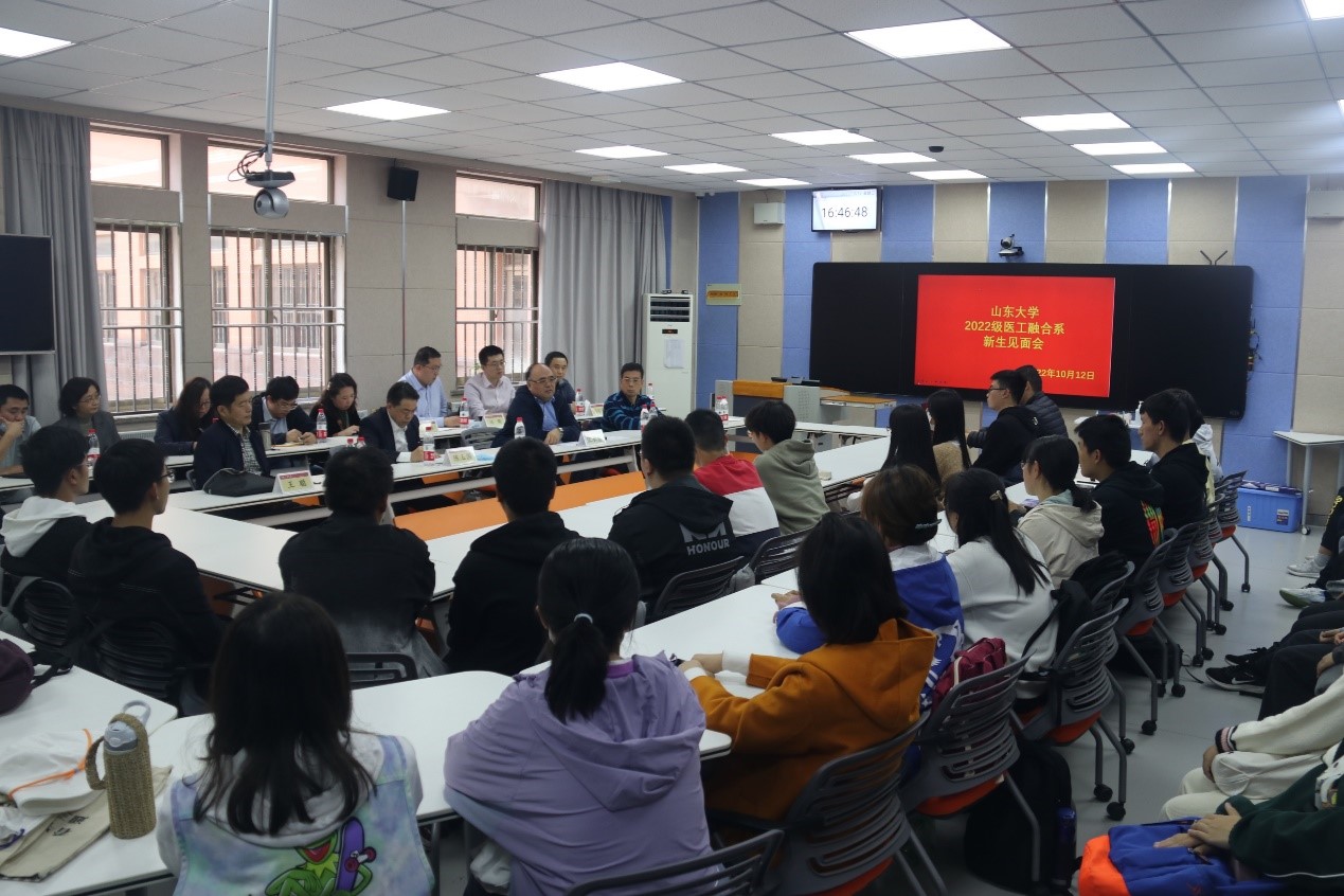 10月12日下午,beat365在线唯一官网医工融合系2022级本科新生见面会在兴隆山校区隆重举行。beat365在线唯一官网齐鲁医院院长陈玉国、beat365在线唯一官网院长张承慧、副院长朱文兴、医工融合系主任王聪出席见面会。beat365在线唯一官网医工融合系骨干教师、齐鲁医院医生代表以及2022级医工融合系全体本科新生参加见面会。医工融合系党支部书记李可主持会议。