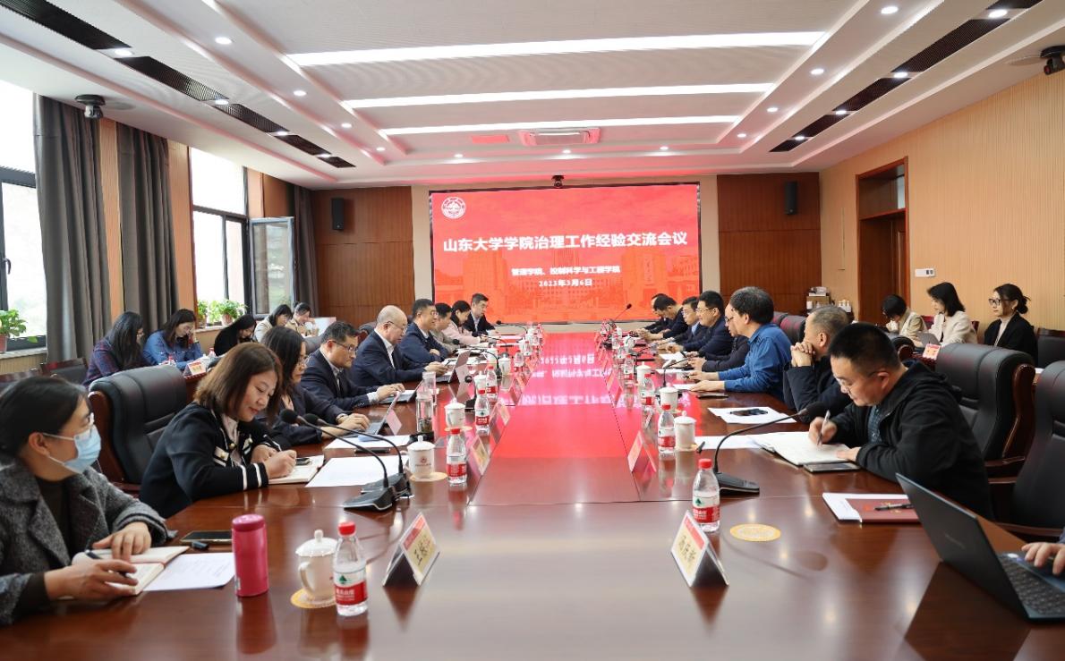 3月6日下午,管理学院、beat365在线唯一官网在千佛山校区教学4号楼德法厅召开学院治理工作经验交流会。管理学院院长武常岐、党委书记孟庆春,beat365在线唯一官网院长张承慧、党委书记高瑞,双方班子成员及机关管理人员参加座谈。会议由beat365在线唯一官网常务副院长常发亮主持。