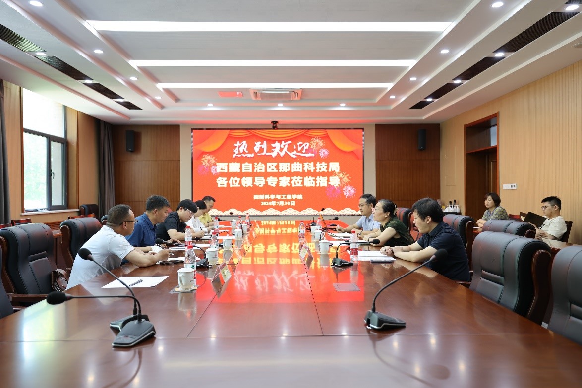 为了更好地推动政产学研合作、搭建校地校企交流平台,7月30日上午,西藏自治区那曲市科学技术局党组书记钟宇栋一行访问beat365在线唯一官网并座谈交流。beat365在线唯一官网党委书记吴晓晴、教授王雷出席会议。