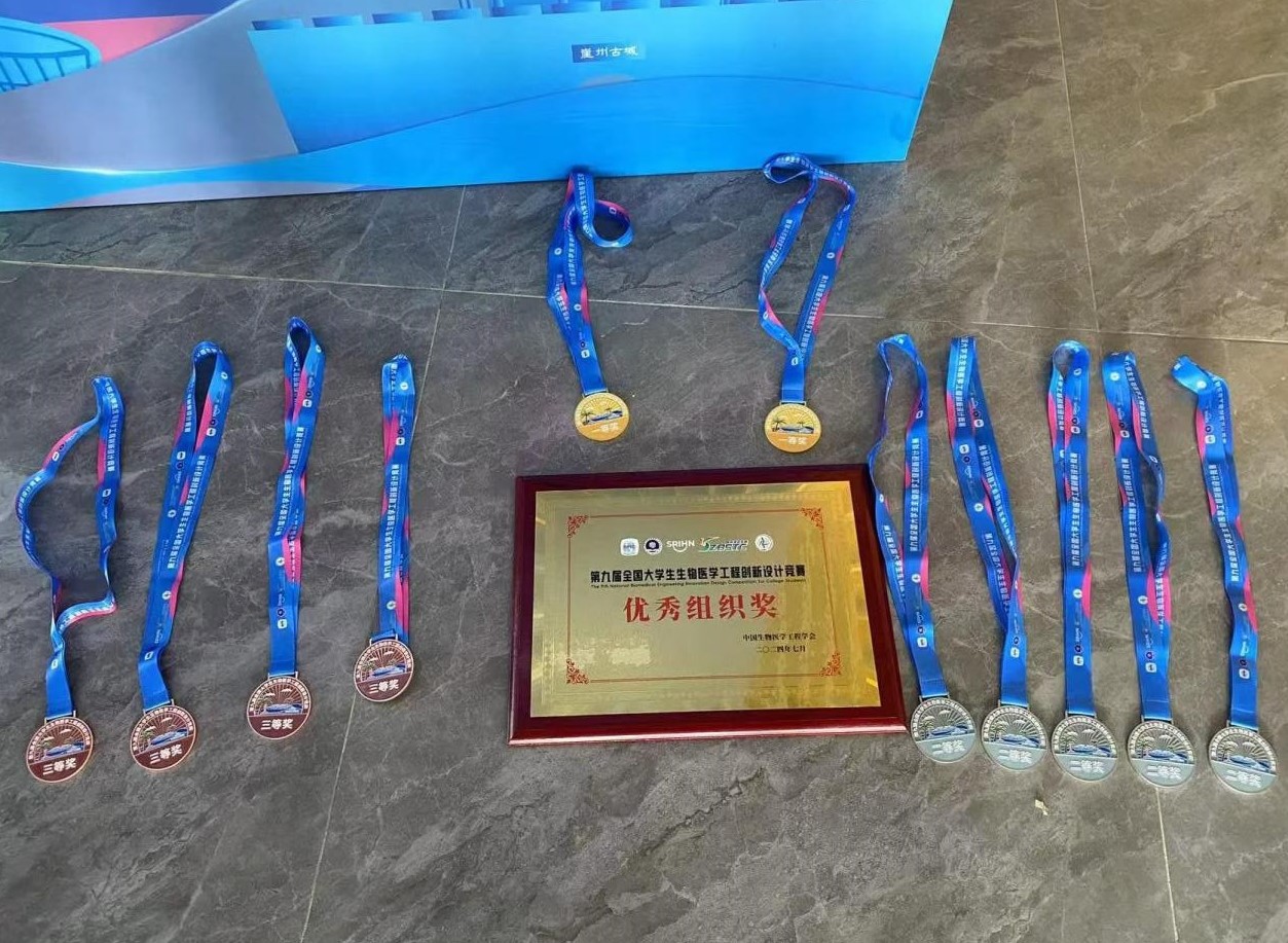 7月22日至26日,第九届全国大学生生物医学工程创新设计竞赛在三亚崖州湾科技城举办。beat365在线唯一官网代表队荣获全国一等奖2项(比例不超过全部参赛队伍的5%)、二等奖6项、三等奖5项,同时获得“优秀组织奖”。本次竞赛吸引了包括清华大学、北京大学、复旦大学、浙江大学及上海交通大学等250所高校的近万名学子参加,共接收有效作品2107件,展示我国生物医学工程领域的最新研究成果与创新思维。