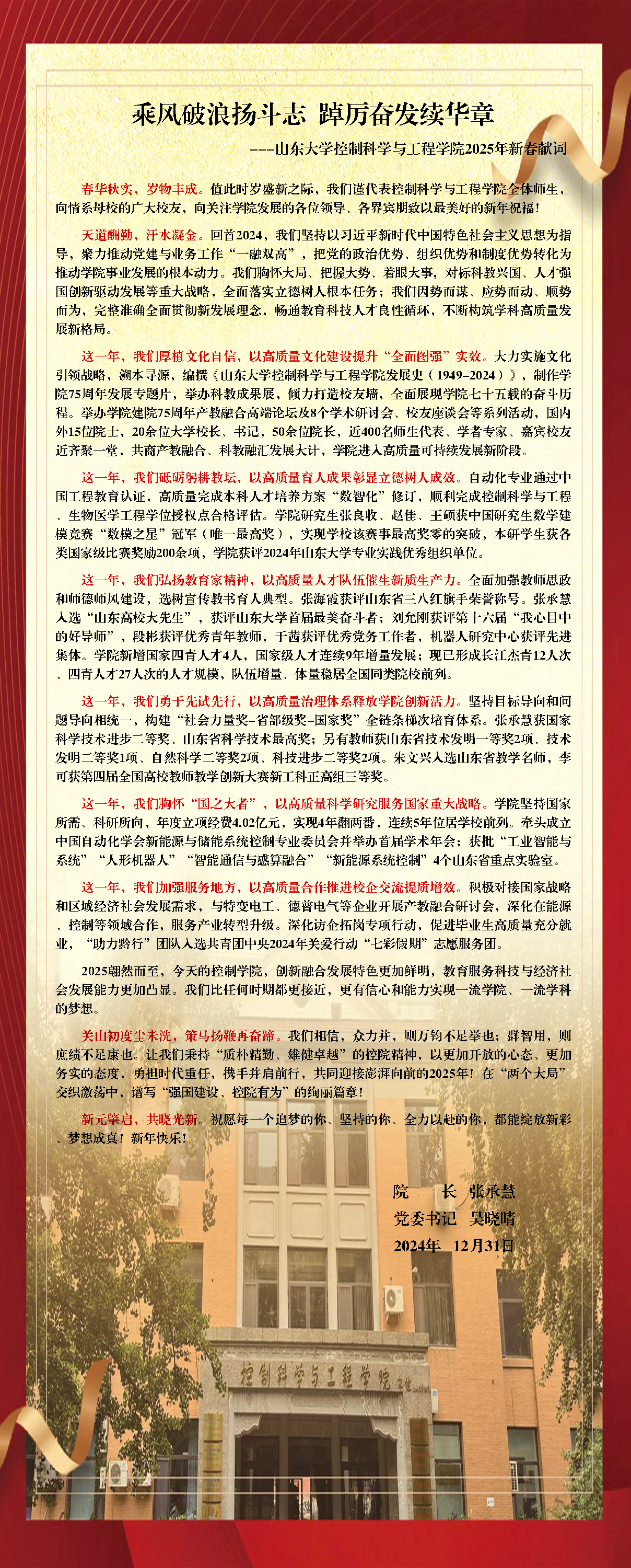 冬至阳生,岁回律转。在这辞旧迎新的美好时刻,beat365在线唯一官网全体师生,向情系母校的广大校友,向关注学院发展的各位领导、各界宾朋致以最美好的新年祝福!
