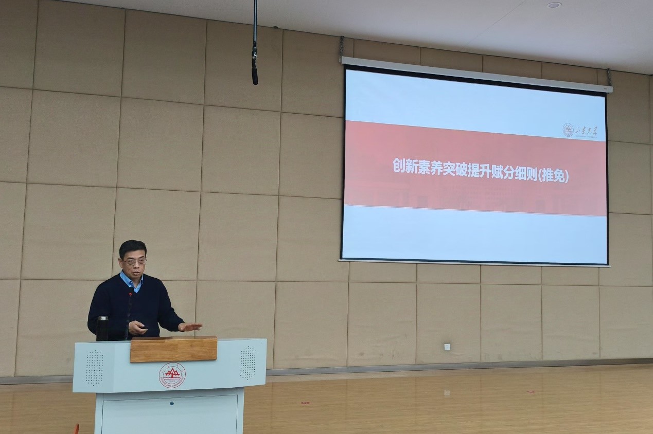 朱文兴重点解读了《beat365在线唯一官网创新素养突破提升赋分细则(推免使用)》(以下简称“细则”),公布了beat365在线唯一官网认可的学科竞赛名单和赋分规定,明确区分了本科生和研究生竞赛赛道成绩认定及本研同赛道竞赛成绩的赋分办法。他指出,本细则与每年度综合评价使用的赋分细则完全不同,提醒同学们认真研读细则中有关科研成果与竞赛获奖类赋分的评审条件与具体流程,提前对照审查自身条件。