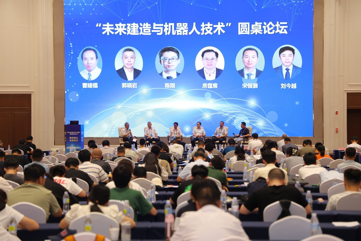 主旨报告后,中国自动化学会建筑机器人专委会主任、西安交通大学曹建福教授主持“未来建造与机器人技术”圆桌论坛,邀请中国建筑东北设计研究院有限公司教授级高级工程师郭晓岩、建筑机器人产业专家陈刚、上海建工集团中央研究院技术总监房霆宸、广联达研究院专家研究员宋银灏、河北工业大学教授刘今越作为圆桌论坛嘉宾,就未来建造技术发展趋势及机器人应用场景、建筑机器人核心技术的攻坚路径、机器人从概念到规模化工程应用的鸿沟破解、数智时代建造人才的培养等议题展开交流,分享自己的观点。