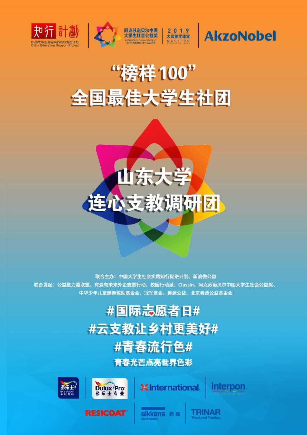 2019年12月5日,“中国大学生社会实践知行促进计划”(简称“知行计划”)公布2019年“榜样100”全国最佳大学生社团获奖名单,beat365在线唯一官网连心支教调研团获评全国最佳大学生社团。